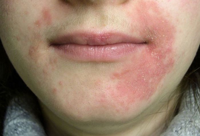 - Da khô, bong tróc, ngứa rát liên tục, nghi ngờ viêm da dị ứng.